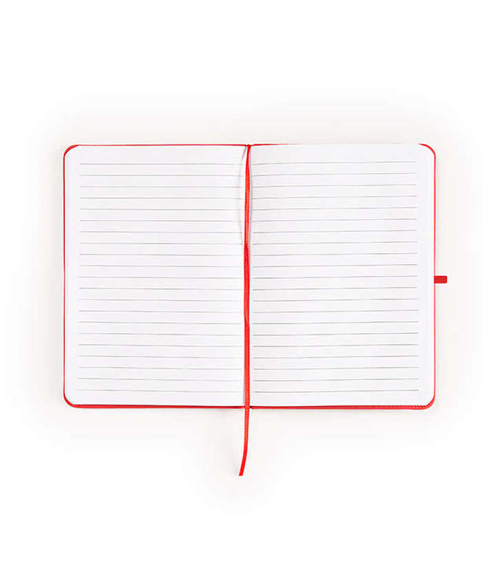 Keep fueling company ideas with this bound notebook that comes with an elastic strap closure, ribbon, and pen loop.